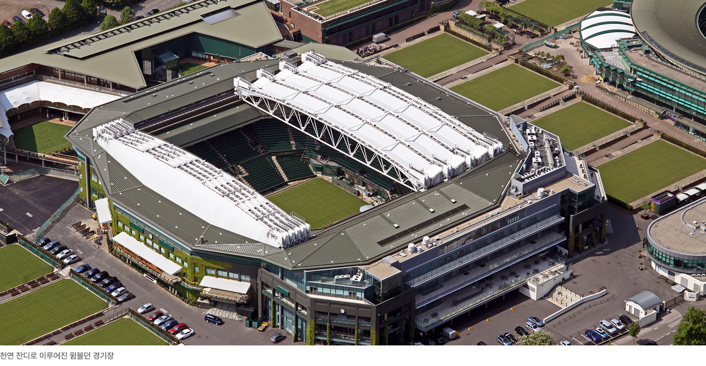 윔블던에서는 1년에 한 번 열리는 그랜드슬램 대회를 위해 무려 1년 동안 스케줄을 세워 잔디를 관리하고 대회를 준비한다. 한국에도 천연잔디로 보이는 코트들을 많이 마주칠 수 있는데 이는 전부 인조잔디다. 인조잔디는 비가 왔을 때 빨리 마른다는 장점이 있고 무엇보다 코트를 시공하는 가격이 매우 저렴하기 때문에 쉽게 만나볼 수 있다.
