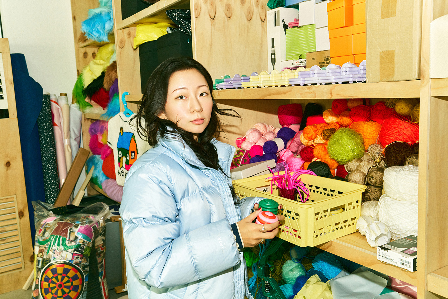 오피스 겸 스튜디오의 절반 넘게 온갖 재료와 비품이 한가득 쌓여 있다. 형형색색 다채로운 질감과 색감의 소재와 물품으로부터 그녀는 판타지적이면서도 동화적인 기묘한 상상의 세계를 자아낸다.
