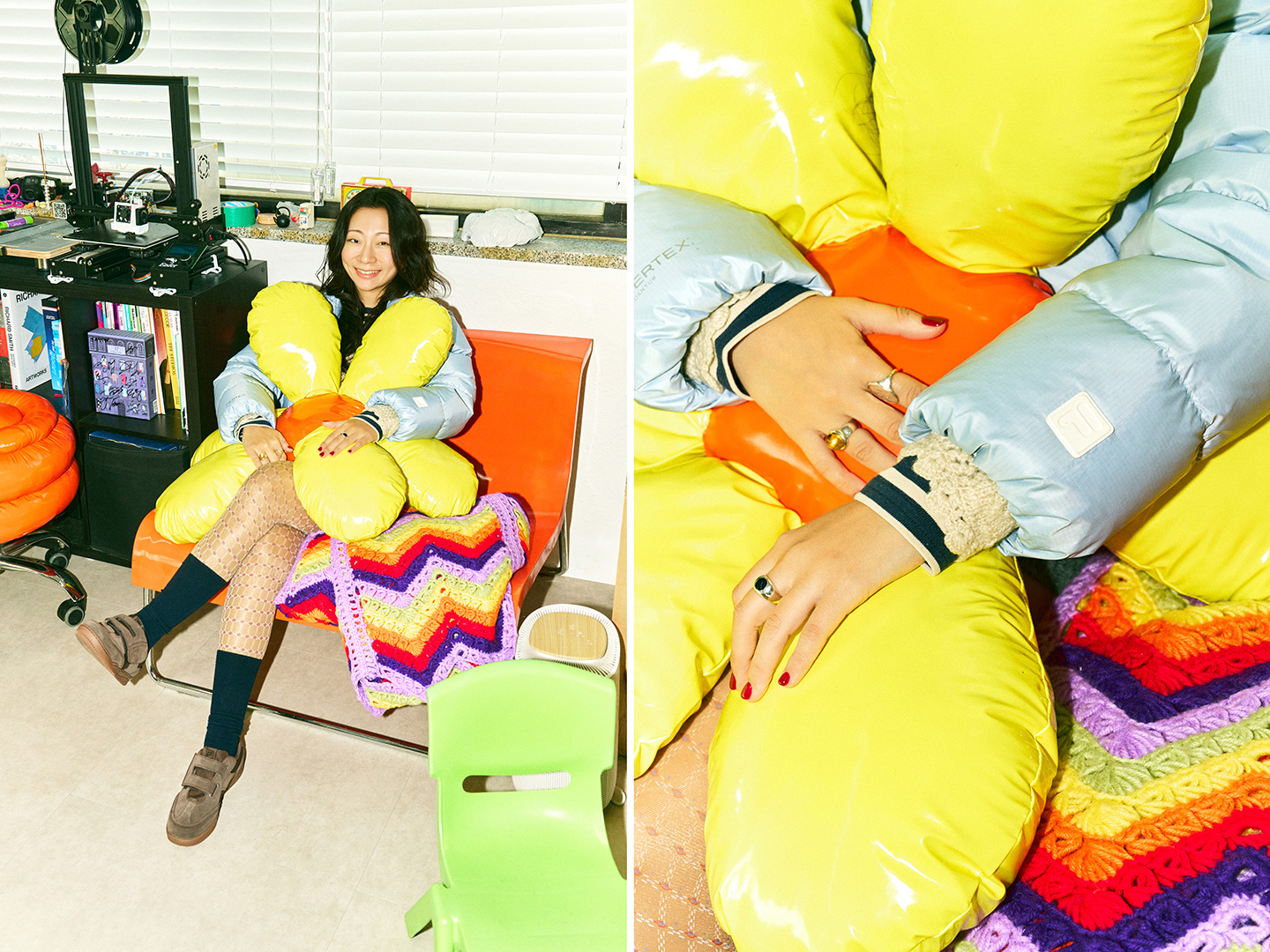 섬유 원단은 3D, 2D 등의 형태로 자유롭게 구현할 수 있고, 강한 물성을 지닌 소재를 감쌀 수도 있고, 솜을 넣으면 특정 형태를 만들기도 용이하죠. 저는 그런 가변적인 특성이 흥미로웠어요.