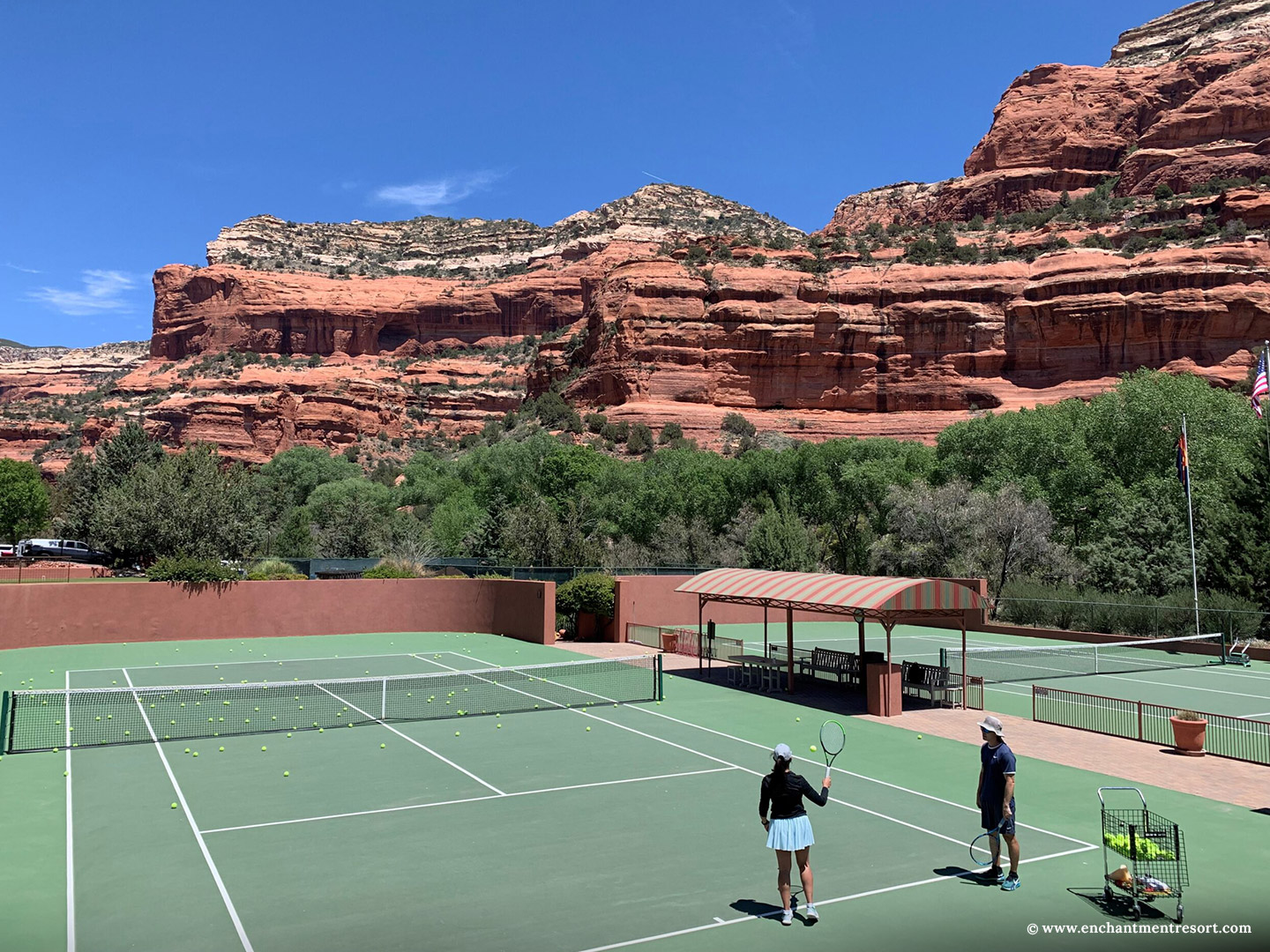 암벽으로 둘러싸인 테니스 코트, 미국 아리조나 인첸트먼트 리조트