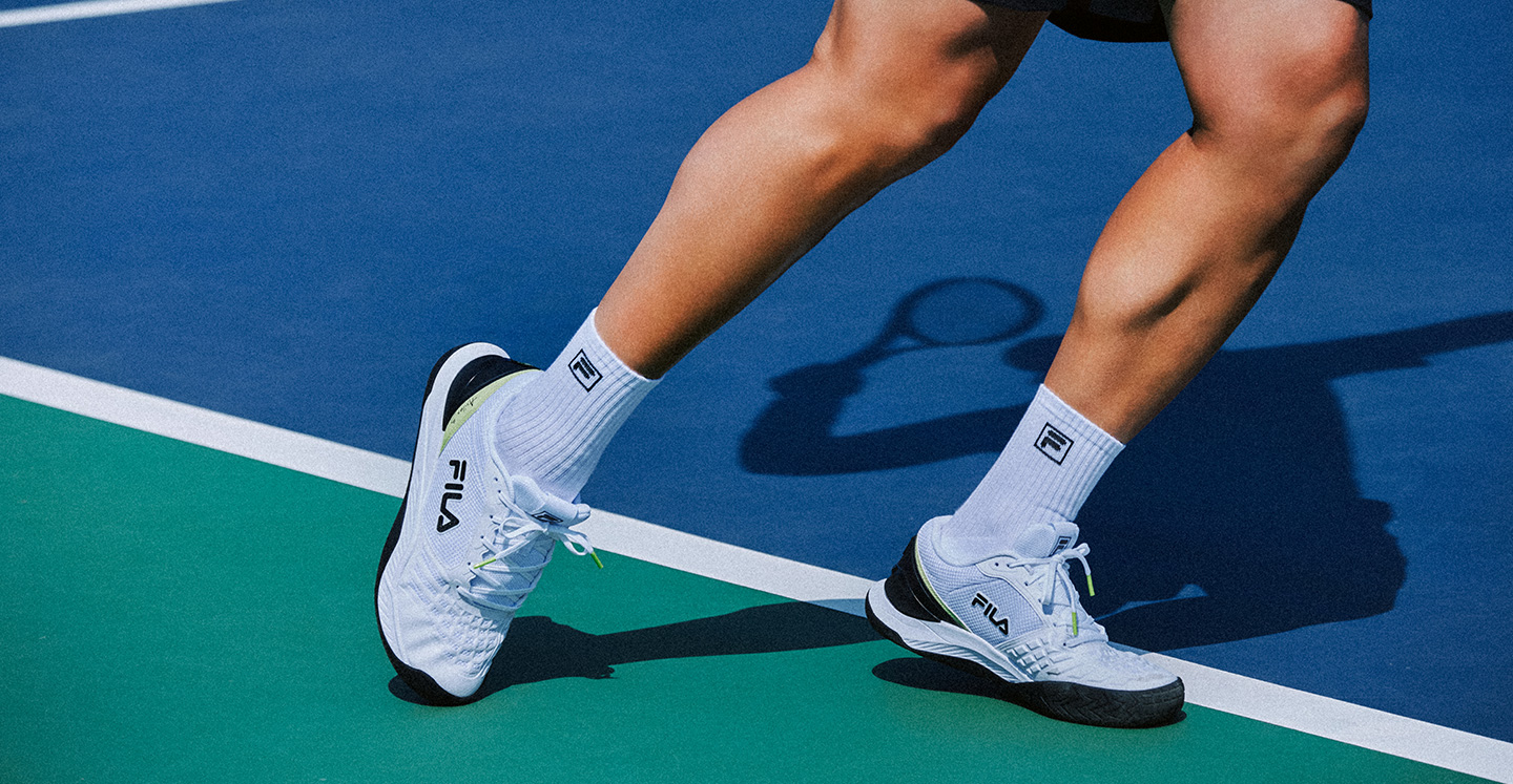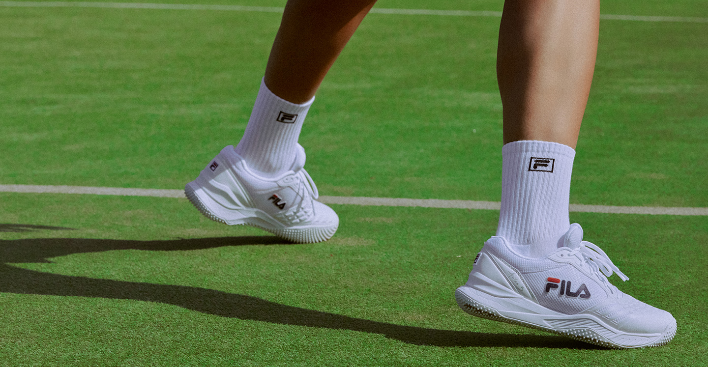 표면이 미끄러운 편이기에 부상을 방지하기 위해선 스터드 형태의 아웃솔로 이뤄진 테니스화를 선택해야 합니다. 휠라의 ‘엑실러스 3 T9 글래스’는 가벼운 무게로 빠른 동작을 하는데 좋으며, 스터드 형태의 아웃솔로 되어 있어 코트 위에서 미끄러지지 않고 안정적으로 활동할 수 있습니다.