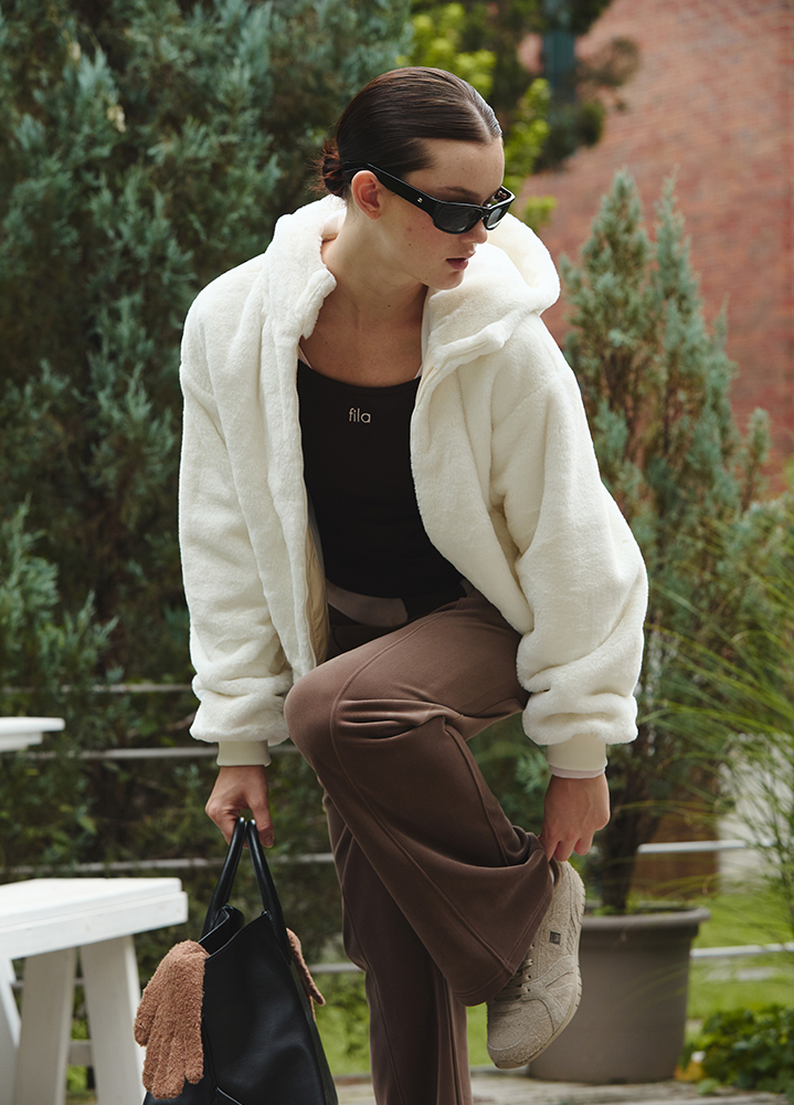 더 진보적인 애슬레틱 룩에 도전하고 싶은 이라면, 페이크 퍼 아우터를 곁들여 보세요. 높은 보온성과 부드러운 터치감, 적당한 크롭 기장과 후드의 캐주얼함이 결합된 화이트 페이크 퍼 후드 점퍼는 걸치기만 해도 밀도 높은 룩을 선사합니다.
