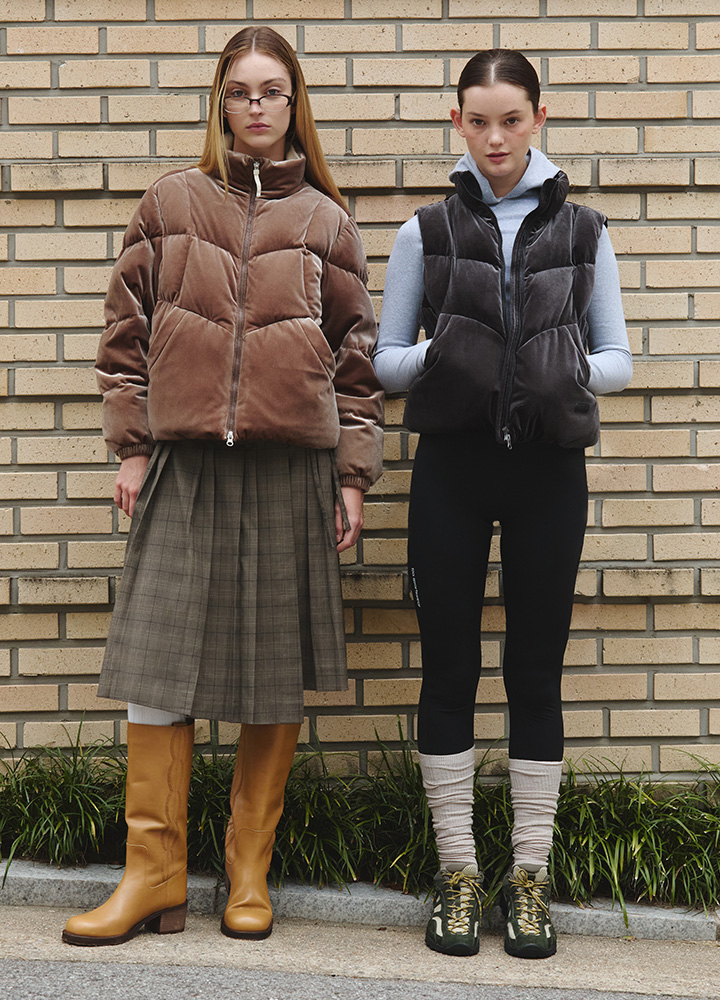 뻔한 다운 아우터 소재 대신 색다른 텍스처를 찾는다면, 깊은 컬러감과 부드러운 터치감을 지닌 벨벳 아이템에 눈을 돌려보세요. 휠라의 벨벳 볼륨 다운 재킷과 벨벳 볼륨 다운 베스트는 차가운 공기에 포근함을 더해주는 동시에, 은은하고 부드러운 광택감으로 한층 더 풍부한 스타일링을 선사합니다.