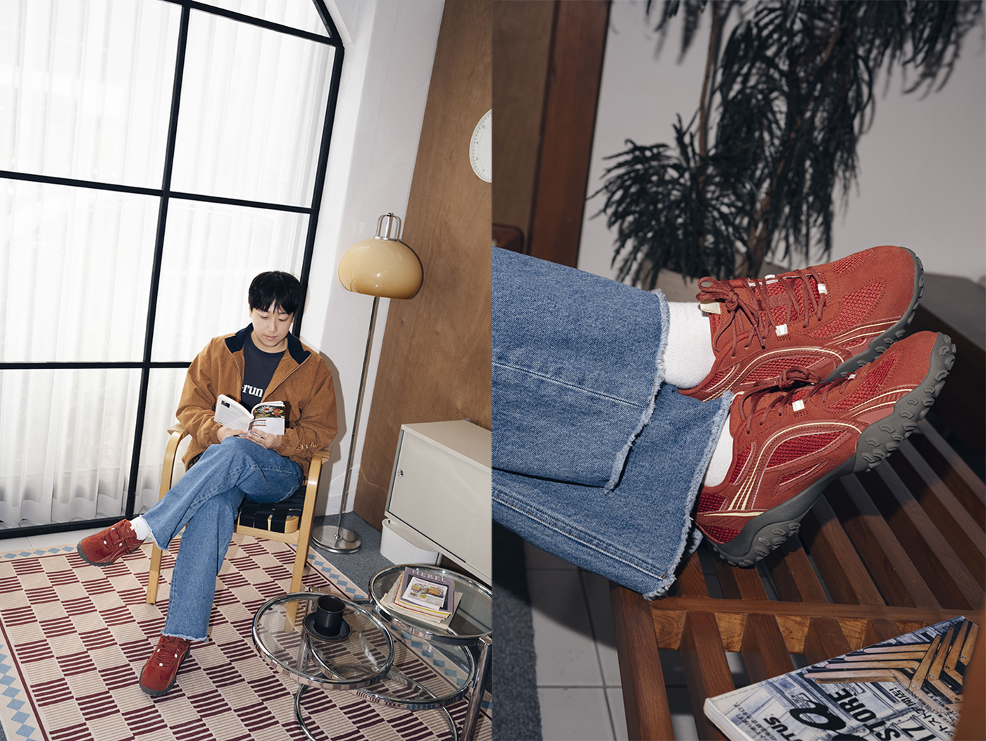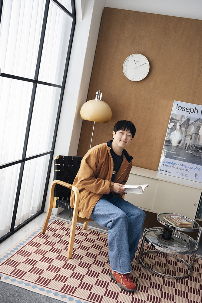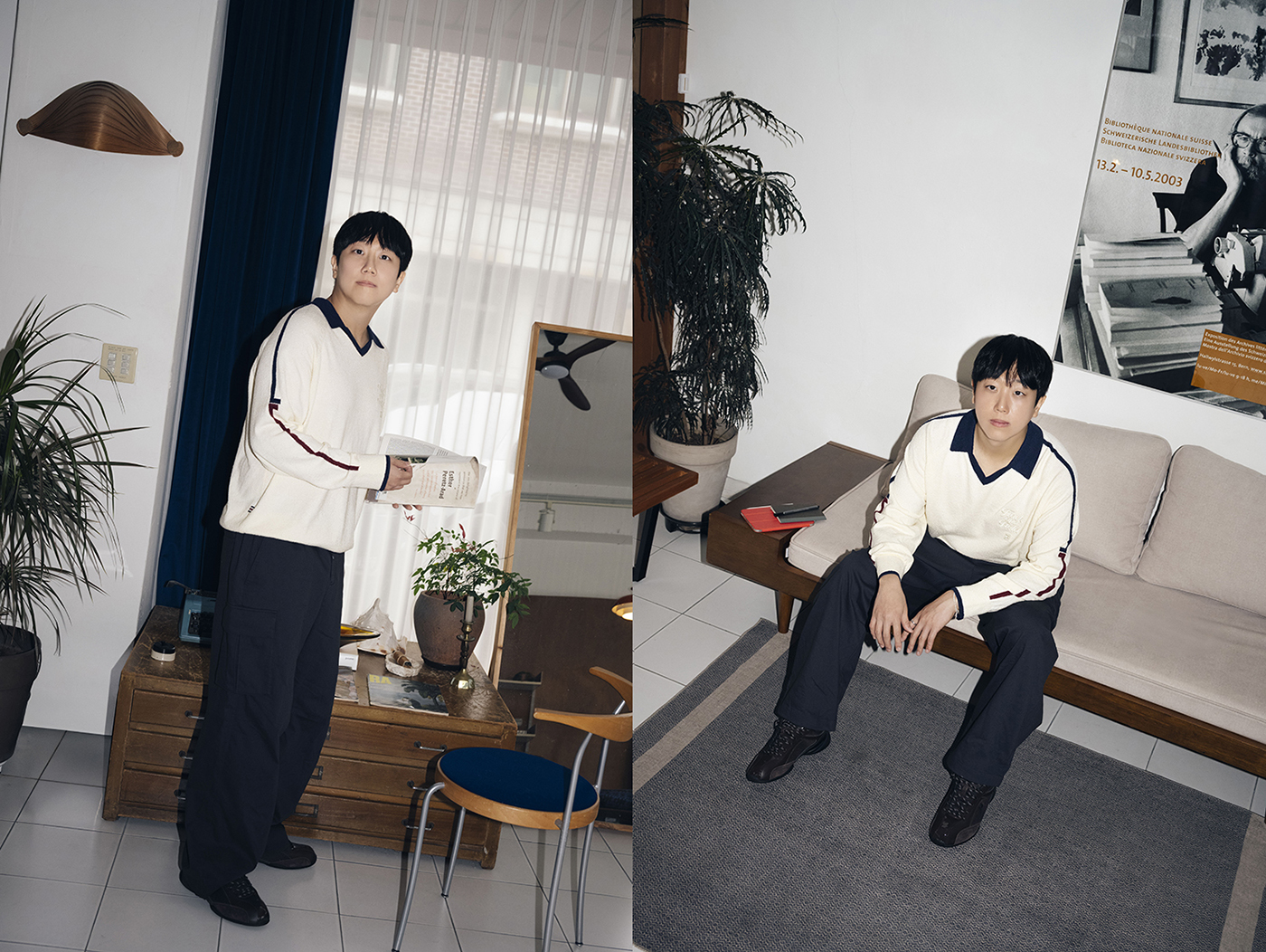 “오버핏으로 입는 걸 선호해서 외투 사이즈를 한 치수 큰 것으로 선택했어요. 점퍼 아랫단에 조일 수 있는 부분이 있어 지나치게 부해보이지도 않아요. 외투와의 조화를 고려해 운동화 컬러를 선택했어요. 휠라에서 가장 인기 있는 제품이라, 신어보고 싶었는데 평소 좋아하는 시티보이룩에 잘 어울리는 듯해요.”