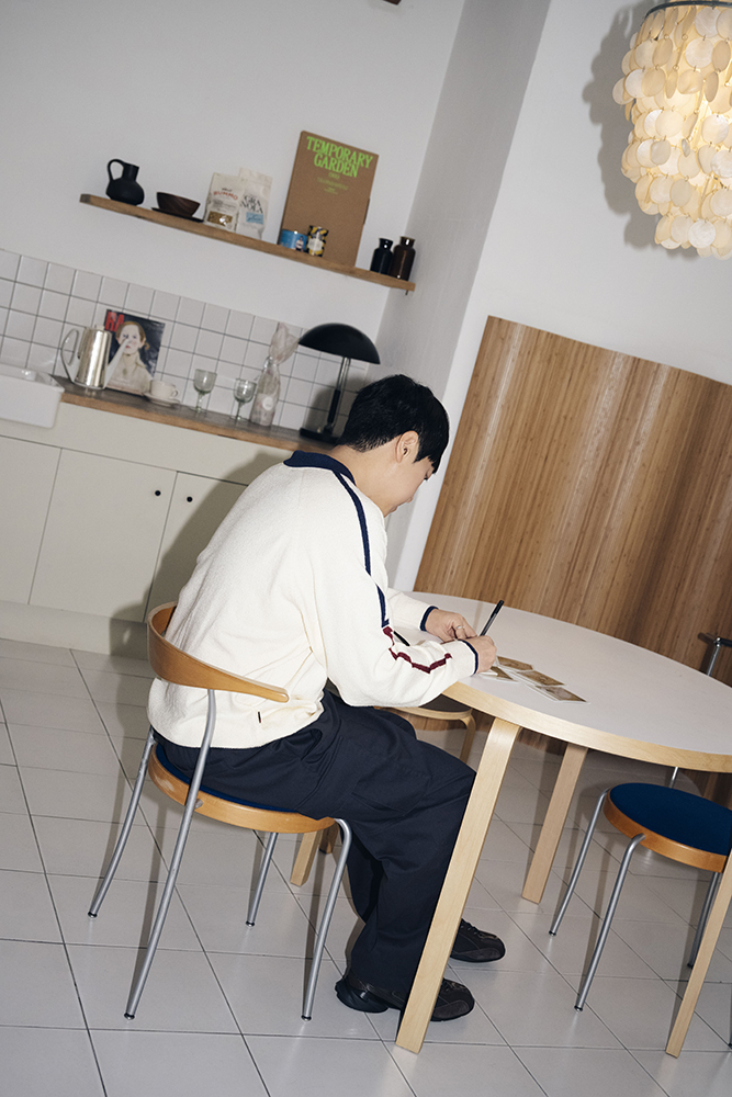 시티보이룩. PD라는 일이 언제 어떤 일이 생길지 모르기에 평소 긴장도 많이하고, 조바심도 많이 내게 되어요. 그러다 보니 옷만은 편하게 입고 싶어요. 한 사이즈 더 큰 것을 선택해 여유 있는 핏으로 입어요. 삶이 좀 ‘칠chill’하면 좋겠다고 생각해요(웃음).